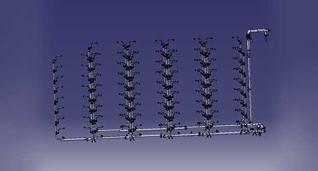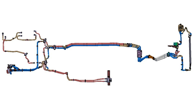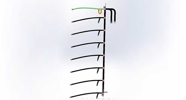 一級液冷主管采用ID50mm的金屬管或PE管,長度共約15~20米; 二級液冷管路采用ID21mm或ID25的PA管,長度共約